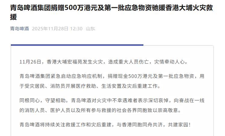 【茶百道捐贈500萬港元馳援香港大埔火災救援】“茶百道ChaPanda”微信號消息,茶百道捐贈500萬港元,馳援香港大埔火災救援。(中新經緯APP)